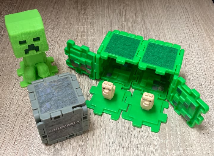 Yesterday, we had McDonald’s Happy Meals for lunch. The Happy Meals came with a toy in collaboration with the Minecraft movie. We bought four meals, so we got four toys. There were one Creeper, two Grass Blocks and a Llama, and one Stone Block and a Garret.